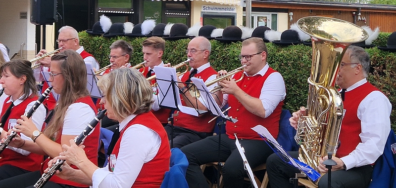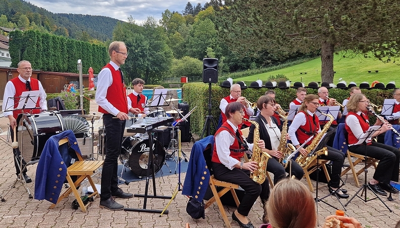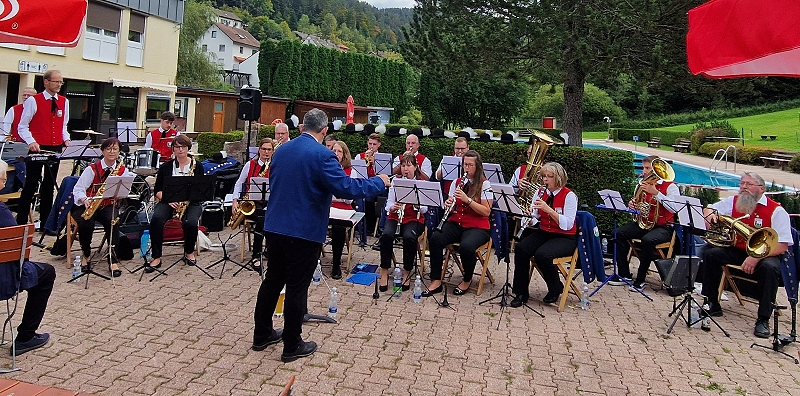 die Trachtenkapelle unter der Leitung von Jochen Schwämmle im Freibad in Höfen.
